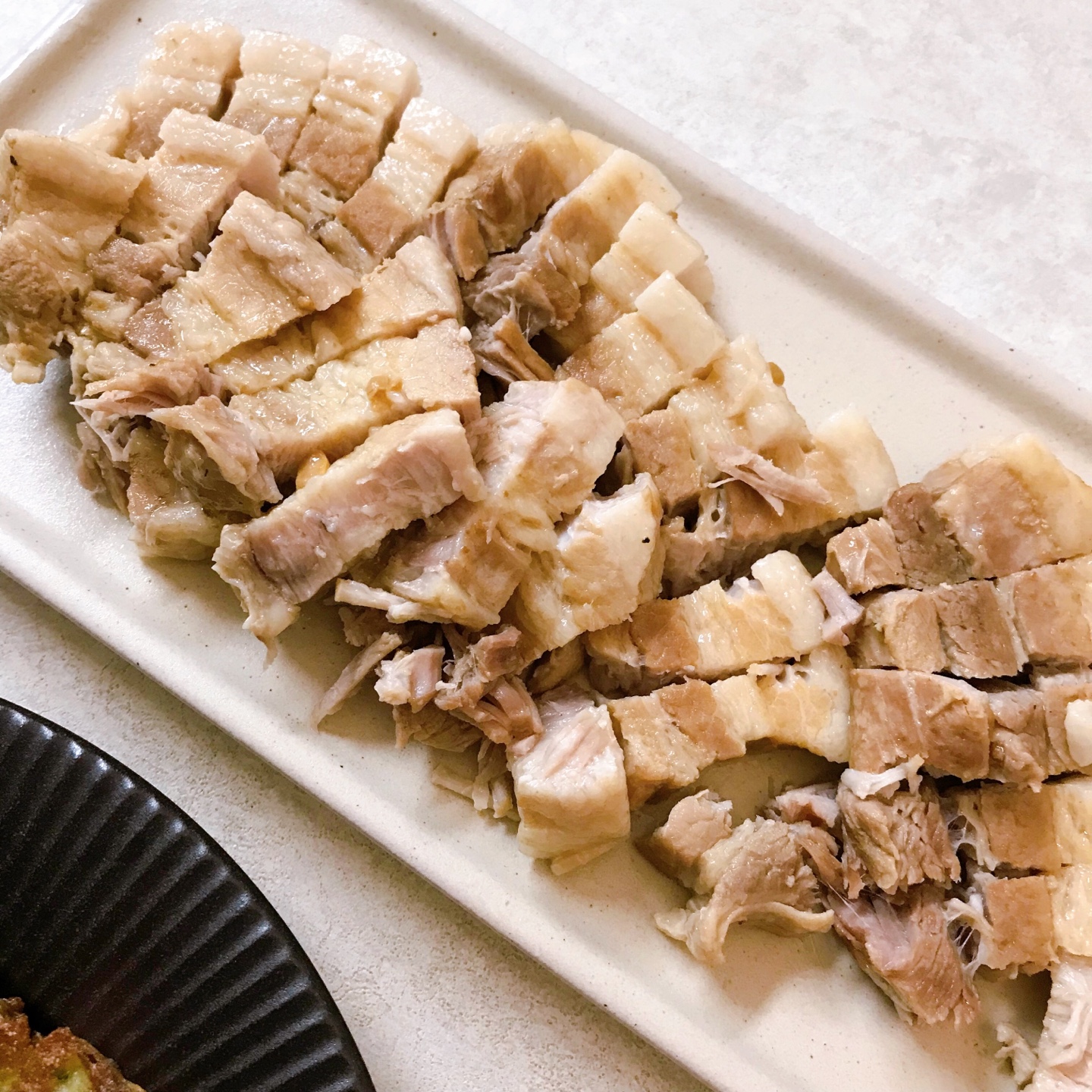 - 완성된 수육을 썰어서 접시에 놓습니다.