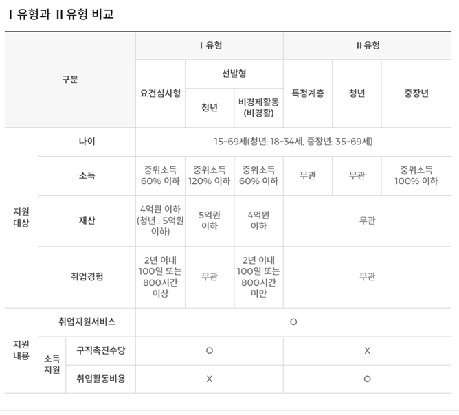 지원가능한 대상자는 참여자의 소득과 재산 등에 따라 두 가지 유형으로 나눕니다.