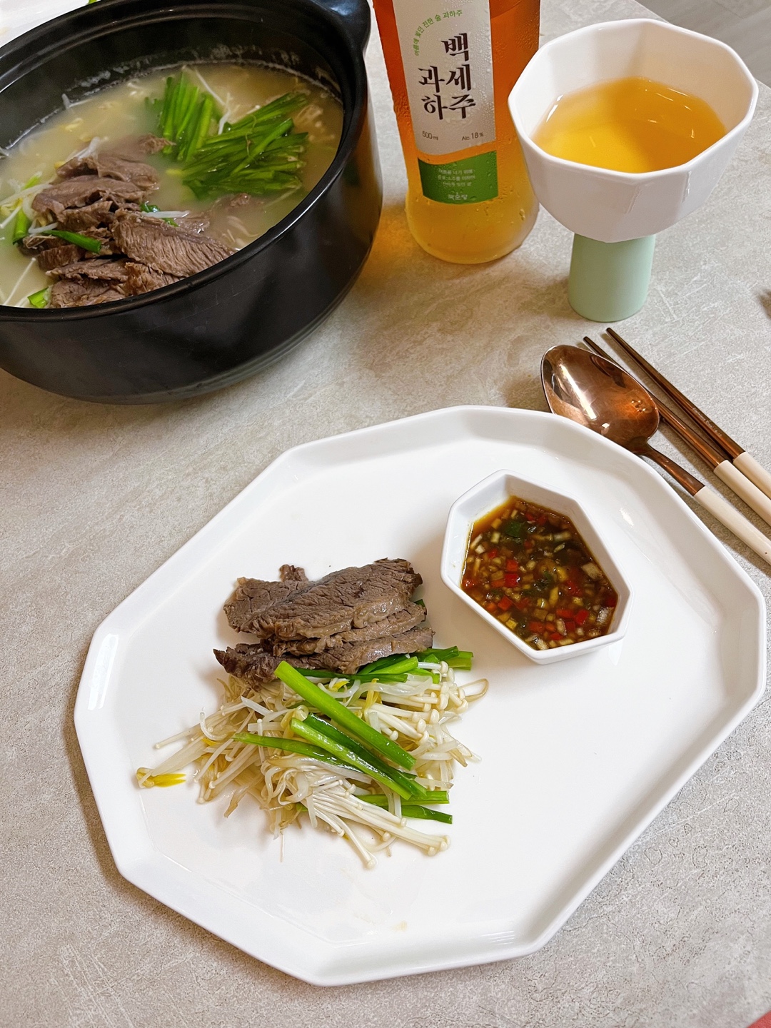 담백한 고기요리인 어복쟁반은 도수가 높은 프리미엄 탁주와 잘 어울려요.