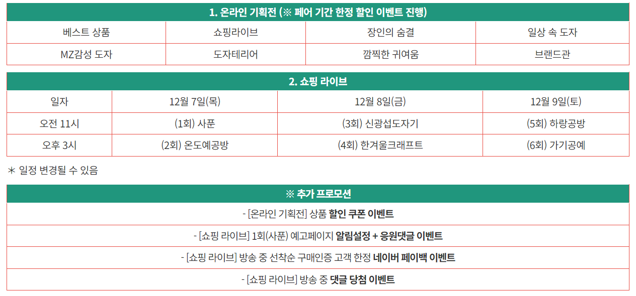 12월 1일부터 10일까지 온라인에서도 도자페어가 열립니다. 자세한 프로그램은 아래 이미지를 참고 바랍니다.