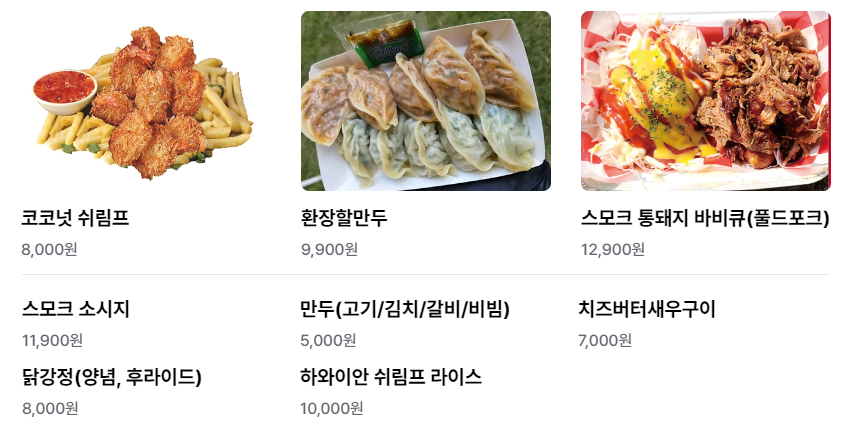 대표 먹거리는 아래 이미지를 참고해주세요!
