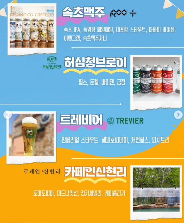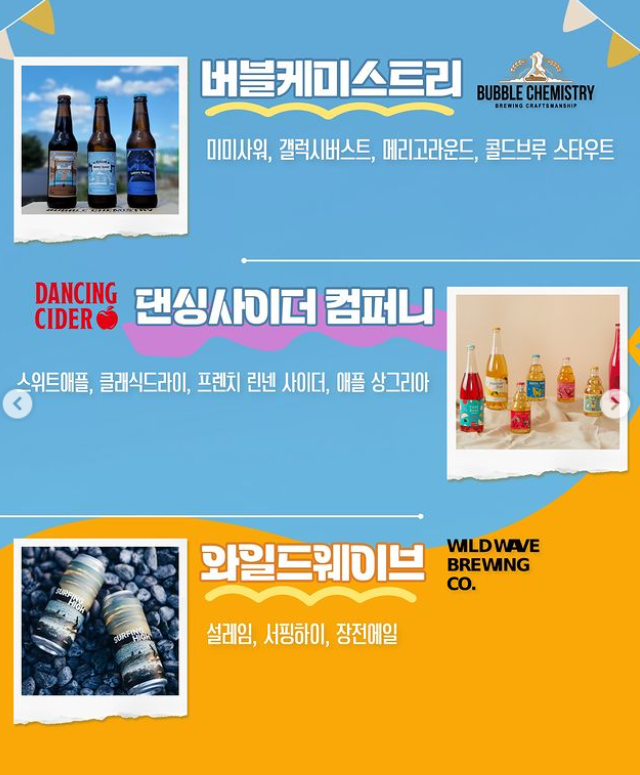 속초맥주, 허심청브로이, 트레비어, 카페인 신현리, 버블 케미스트리, 댄싱사이더 컴퍼니, 와일드 웨이브, 별맥 브루잉, 대경맥주, 대도양조장