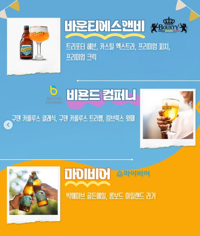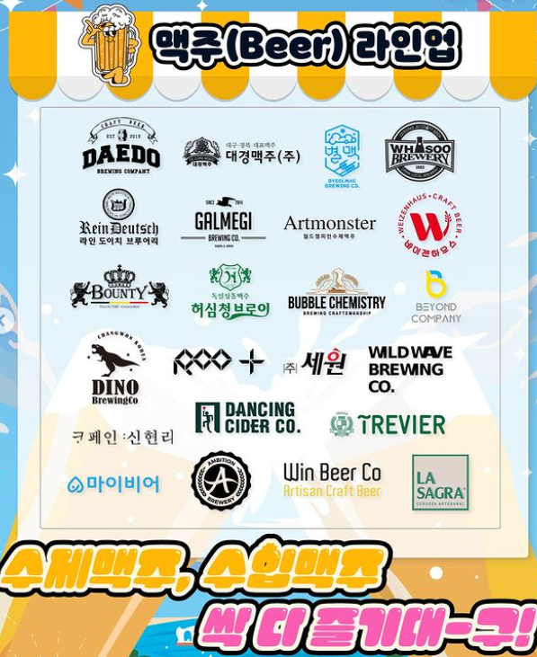 세원(산미구엘), 윈비어(델리리움), 라사그라 코리아, 바운티에스앤비, 비욘드 컴퍼니, 마이비어(빅웨이브, 롱보드)