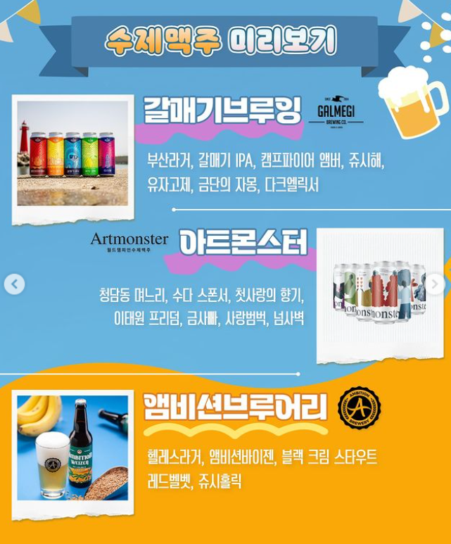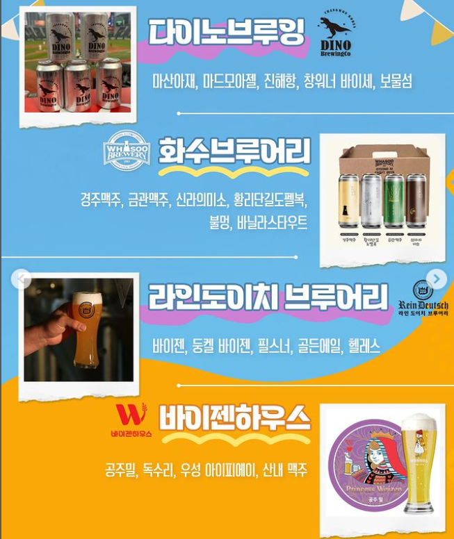 갈매기 브루잉, 아트몬스터, 앰비션브루어리, 다이노브루잉, 화수브루어리, 라인도이치 브루어리, 바이젠하우스