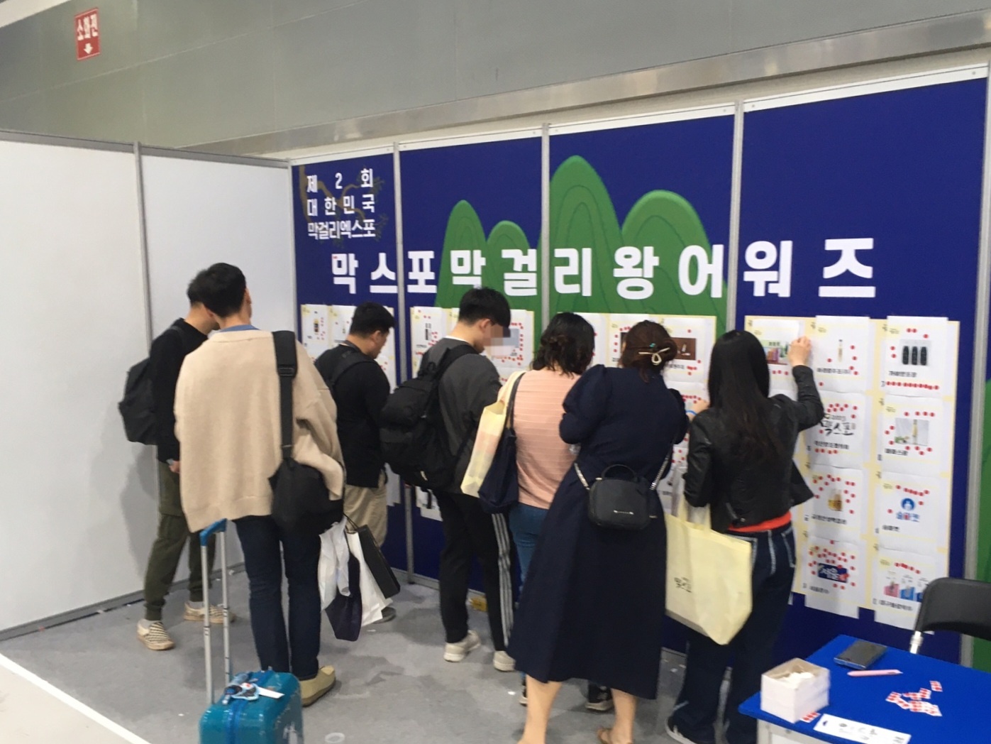막걸리 엑스포에는 재미있는 부대행사가 많이 준비되어 있습니다. 그 중 "막걸리 왕 어워즈"는 관람객이 직접 막걸리 왕을 뽑는 인기투표 행사인데요. 막스포 행사 기간 중 가장 마음에 들었던 업체를 관람객이 직접 선정해 스티커를 붙여주는 부대행사랍니다.