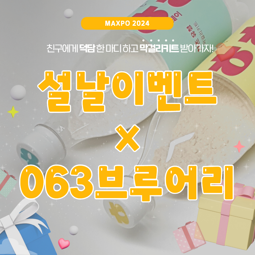 이번 설날 이벤트는 막스포와 063브루어리의 콜라보 이벤트인데요. 063 브루어리의 막걸리키트(라이스팝, 치즈유청 맛 각 1병)를 증정하는 이벤트입니다.