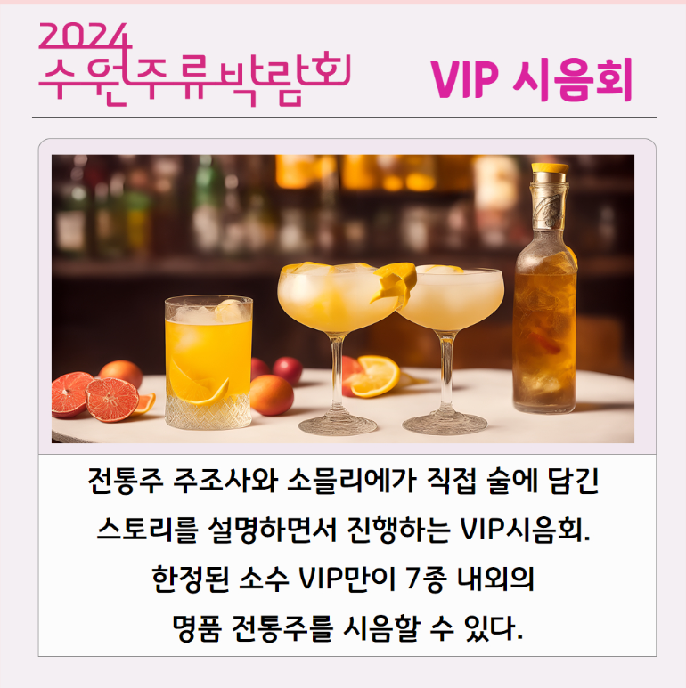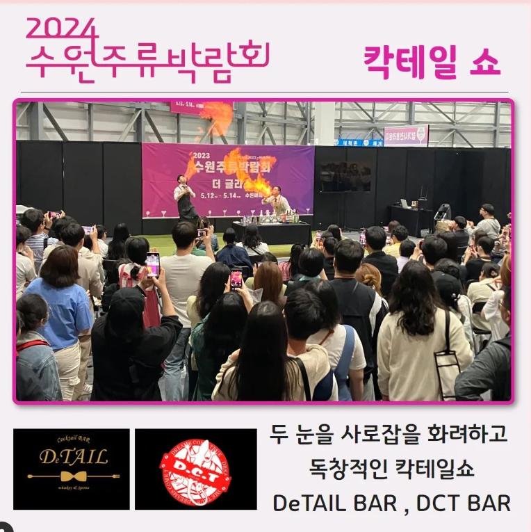 2023년에 1백여 개의 업체가 참가하고 1만 2천여 명이 방문했던 수원 주류박람회. 올해 역시 국산, 수입 와인, 전통주, 수제 맥주, 수입 맥주, 위스키, 수입 주류, 안주, 주류 용품 등 1천여 종의 주류를 소개할 예정이라고 합니다.
