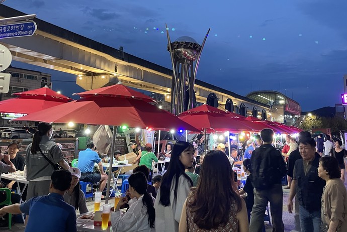 - 가실 분들은 미리미리 준비하셔서 최대한 일찍 가시는 것을 추천드립니다. 6시쯤 방문했는데 사람이 너무 많아서 포차에 자리를 잡기는커녕 걷기도 힘들 정도였어요. 음식 주문 줄도 굉장히 길었고요.