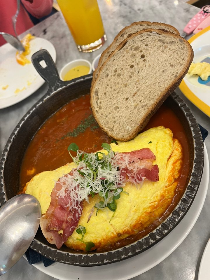 밥 종류가 먹고 싶어서 오믈렛을 주문했는데 계란지단 안쪽 밥에 치즈가 섞여있었고 간이 약간 심심했어요. 오믈렛은 생각보다 평범해서 또 방문한다면 시키지 않을 것 같아요.