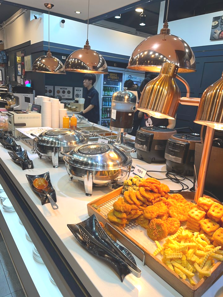 그 외에 고기, 튀김류, 떡볶이, 잡채 등의 셀프코너는 기존과 동일했습니다. 24,900원에 고기와 생맥주가 무제한이니 너무 괜찮은 것 같아요!
