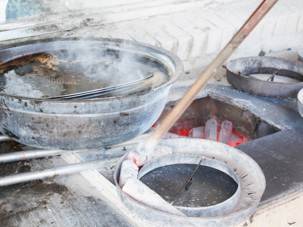 여기는 숯불 직화로 생물 생선을 구워주는 곳인데요. 사진처럼 식당 바깥에서 계속해서 숯을 데우고 계셨어요.