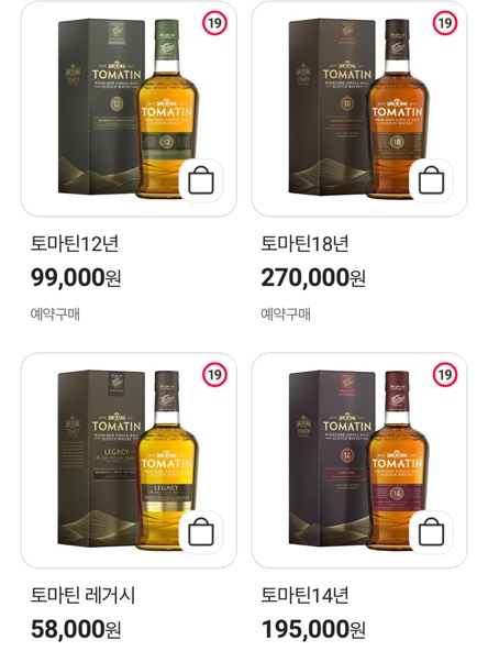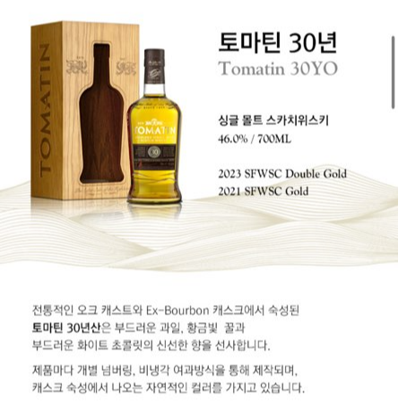 11월 16일부터 12월 23일까지 진행되는 토마틴 기획전에서는 토마틴 캐스크 스트렝스, 토마틴 18년 산, 14년 산, 12년 산, 토마틴 레거시를 만날 수 있습니다. (할인행사는 아님)