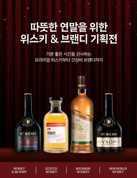 11월 17일부터 12월 23일까지 진행되는 기획전입니다. 프리미엄 위스키부터 가성비 브랜디까지 준비되어 있습니다.