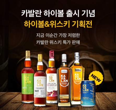 11월 13일부터 12월 31일까지 진행되는 할인행사입니다. 카발란 위스키 5종이 모두 할인 중이며 카발란 위스키가 기주로 들어간 카발란하이볼(캔)도 있어요.