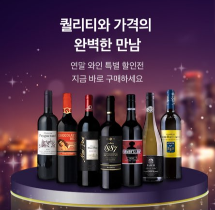 11월 20일부터 12월 23일까지 연말 와인 특별 할인전이 진행됩니다. 가성비 좋은 1만 원대 와인부터 최고 60만 원대의 와인까지 할인 중이네요.
